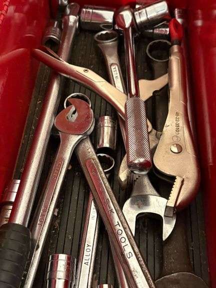 LOT 151 - Husky Toolbox with Wrenches, Breaker Bar, Vice Grips, More