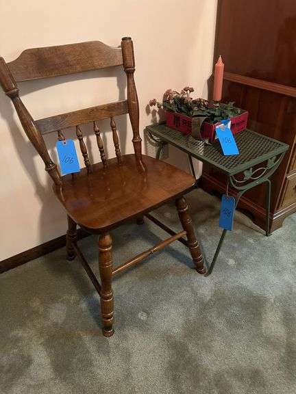 LOT 106 - Chair, (2) Metal Tables, Trash Bin